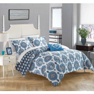 Chic Home Cedar 4 Pieces Duvet Cover Set Cotton Zipper Closure Pillow Shams King 106 X 92 Blue Bed Bath Beyond